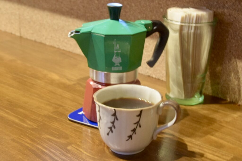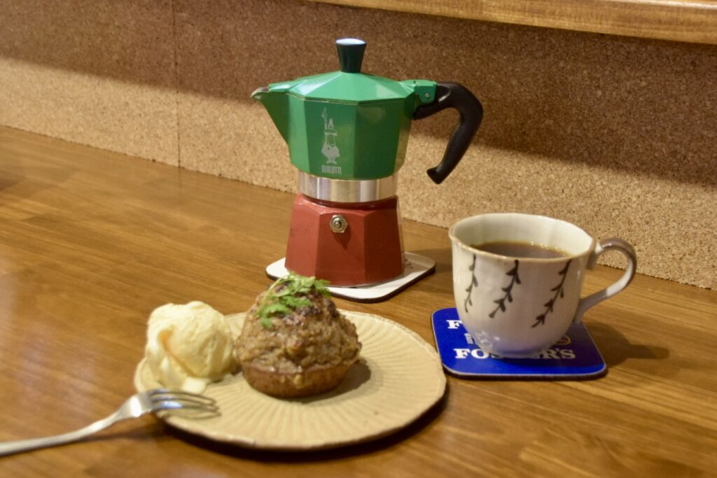 隣でハイボールを飲んでる若者を横目に今日は食事処としてコーヒーを飲みながら名物「オムライス」&「掛川道中モンブラン」